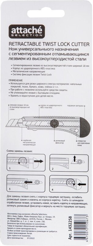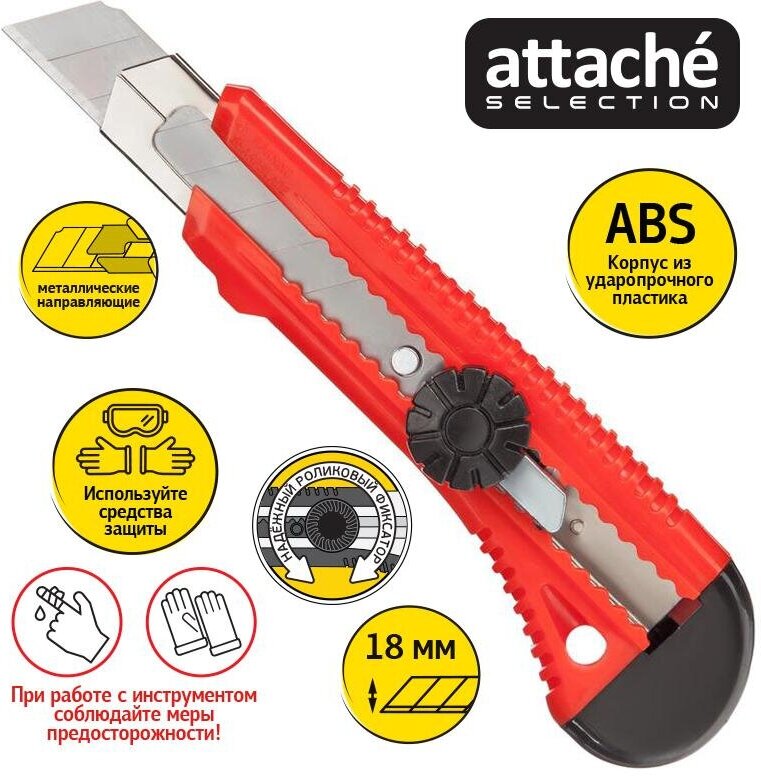 | Дополнительная информация | Канцелярский нож Attache Selection строительный, ширина лезвия 18 мм, с фиксатором |