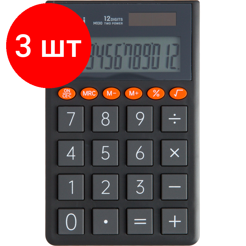 10 цен на Комплект 3 штук, Калькулятор карманный Deli EM130, 12-р, дв. пит,70.2x8.5x112.2 мм, темн-сер