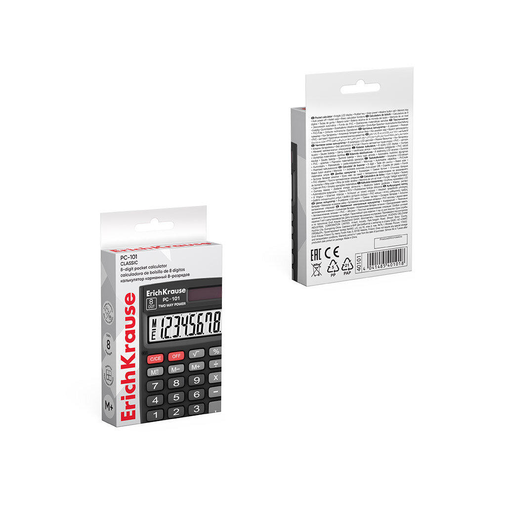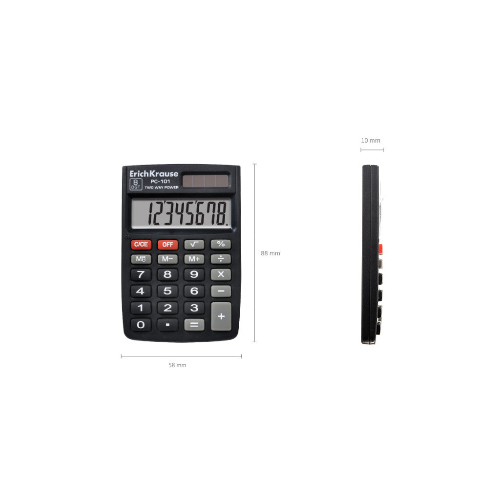 Калькулятор карманный 8-разрядов ErichKrause PC-101 Classic, черный (в коробке по 1 шт.) информация: