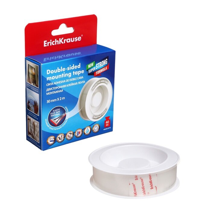Двусторонняя клейкая лента монтажная ErichKrause, прозрачная, 1ммх30ммх2м 10352354 670 ₽