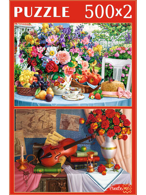 Пазл 1000д._2в1 РыжийКот Цветочные натюрморты [500+500 деталей] (ХП500-4313) информация: