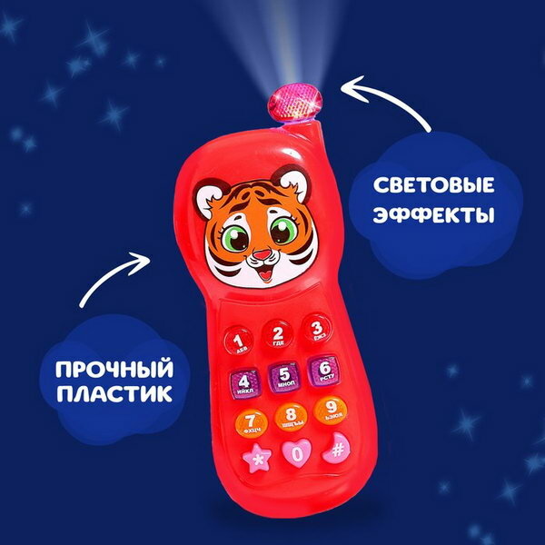 Отзывы на Музыкальный телефон детский "Добрый друг", световые эффекты, русская озвучка, работает от батареек