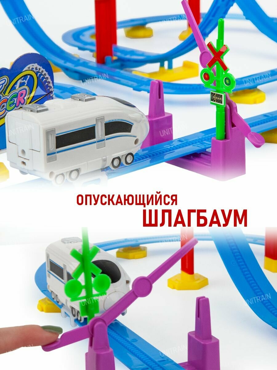 | Комплектация | электропоезд / 83 детали для сборки рельс |