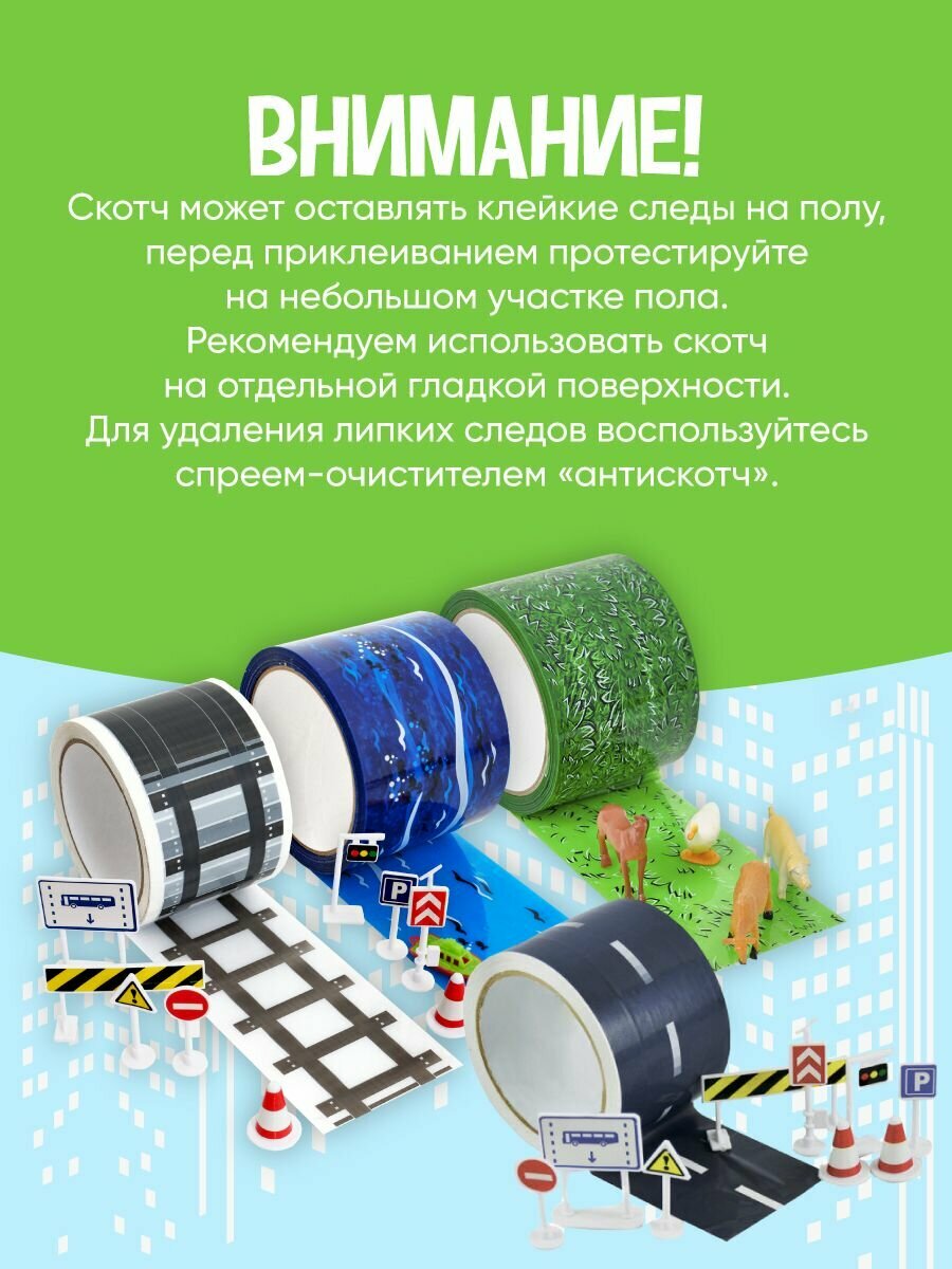 Набор игровой скотч железная дорога 72мм х 50 м / Дорожные знаки 370 ₽