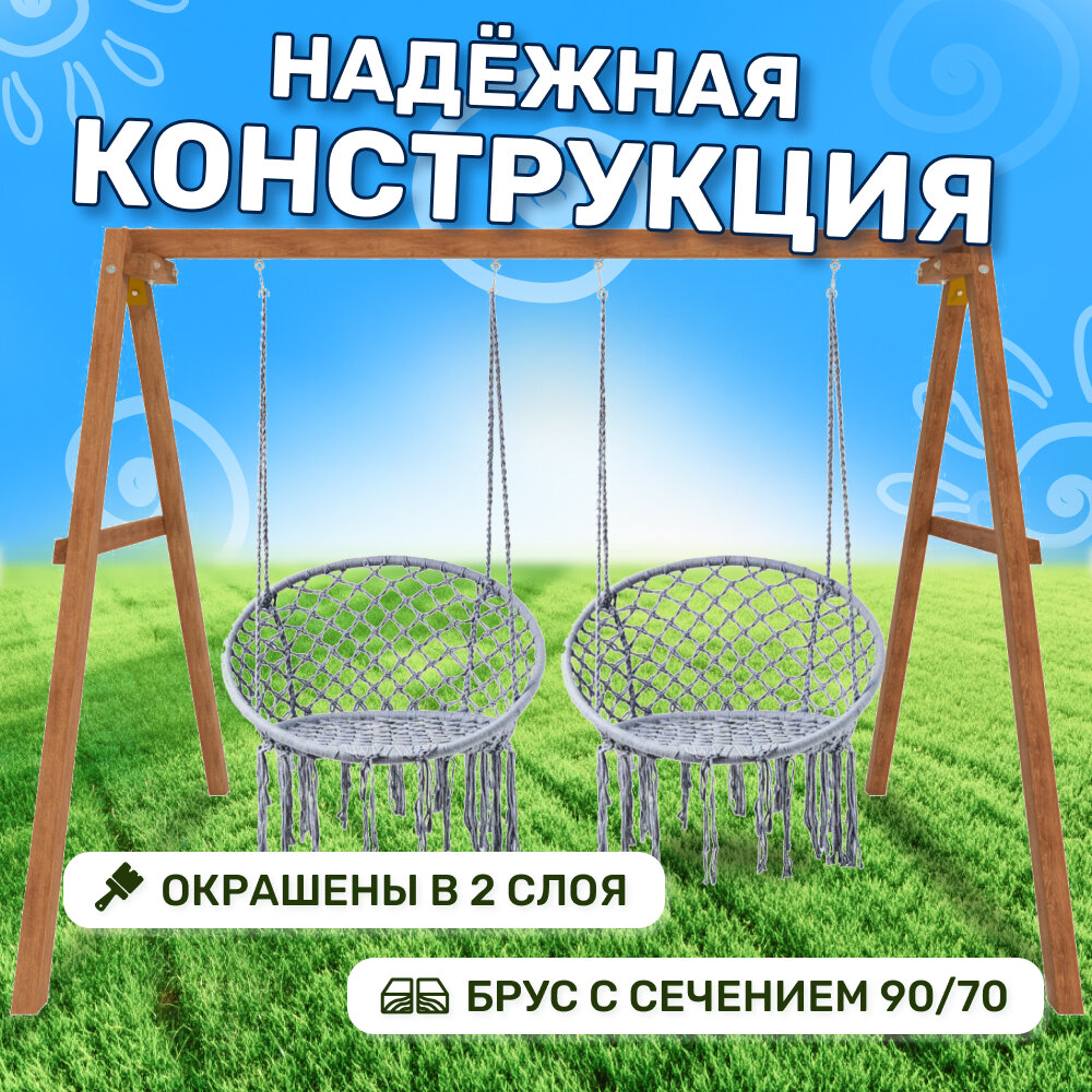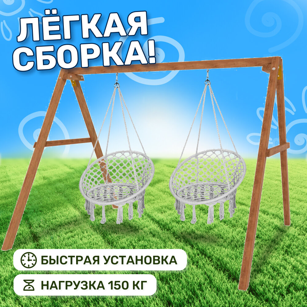 Отзывы на Детские деревянные качели National Tree Company с подвесными креслами в сером цвете, уличные подвесные качели для дачи