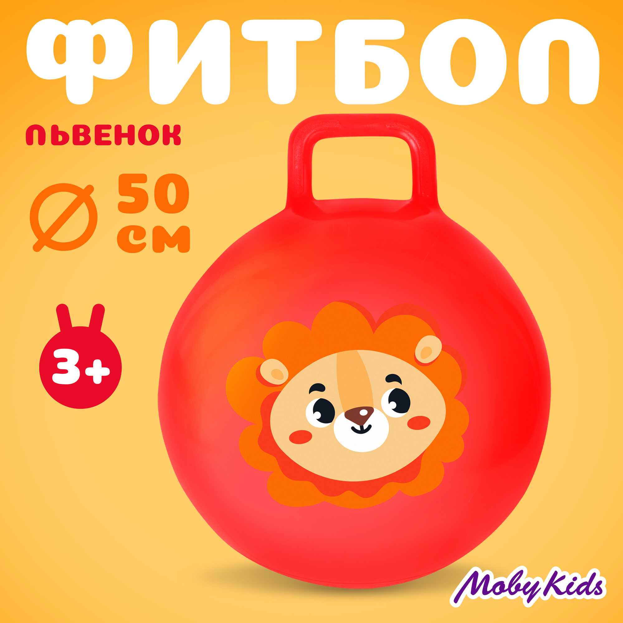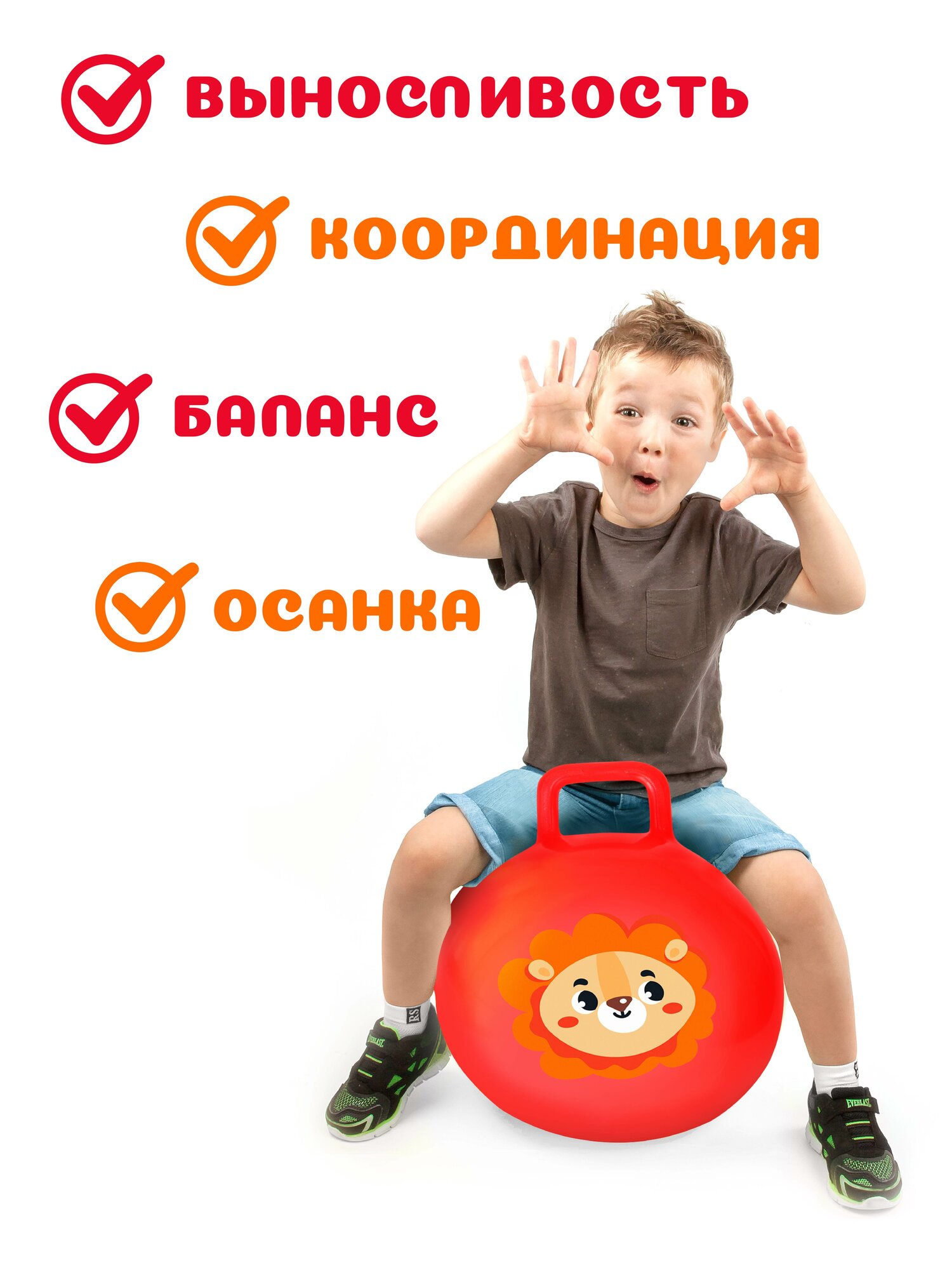 Попрыгун фитбол с ручкой Moby Kids "Львёнок" с ушком 45 см, красный, диаметр 50 см, для детей от 3 лет информация: