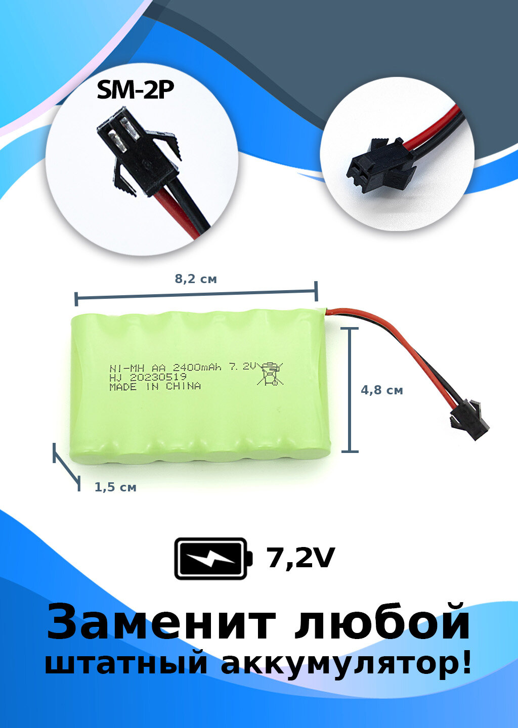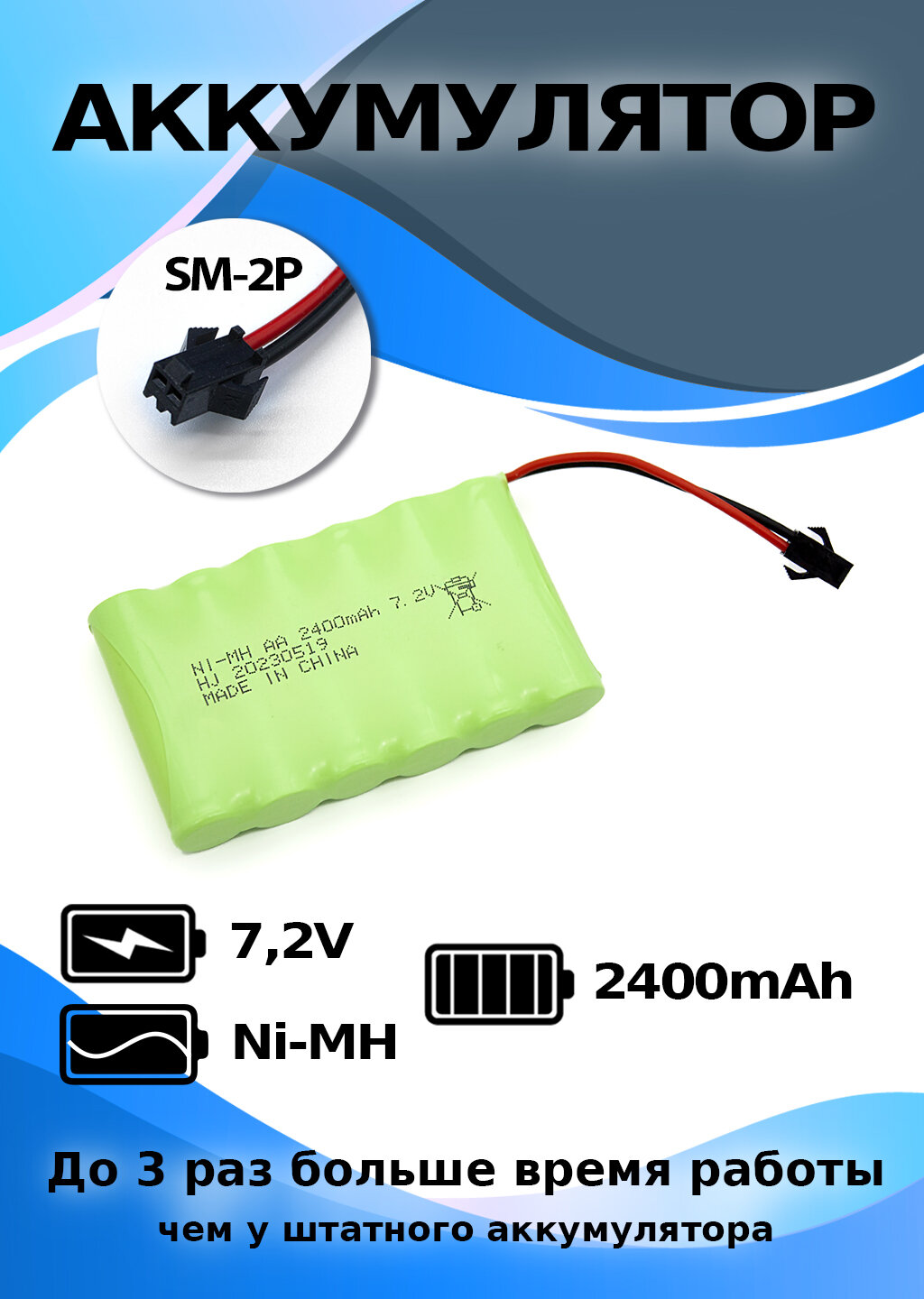 Аккумулятор 7,2 В, 2400 мАч, разъем YP информация: