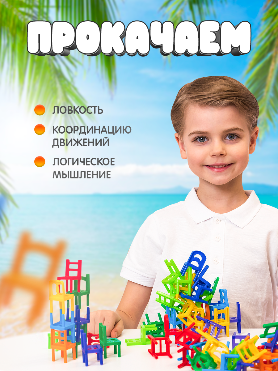 10 цен на Настольная игра "На 4 ногах" 18 стульев, 8 цветов, построй башню, для детей и малышей