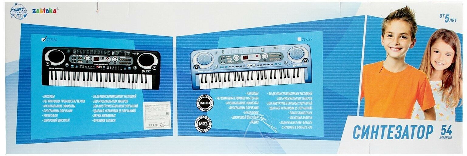 Синтезатор ZABIAKA (Забияка) "Музыкальный взрыв", 54 клавиши, работает от сети и от батареек (727126)