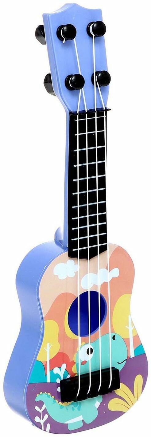Музыкальная игрушка Гитара "Динозаврик" для детей, 4 струны, размер 25,5 х 9 х 3 см, струнный инструмент для развития творческих способностей, слухового восприятия и чувства ритма, цвета микс информация: