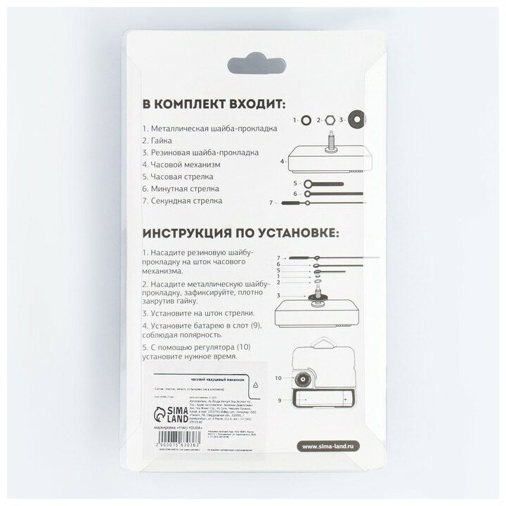 Набор "Соломон-13" часовой кварцевый механизм дискретного хода, с подвесом, шток 16 мм./В упаковке: 1