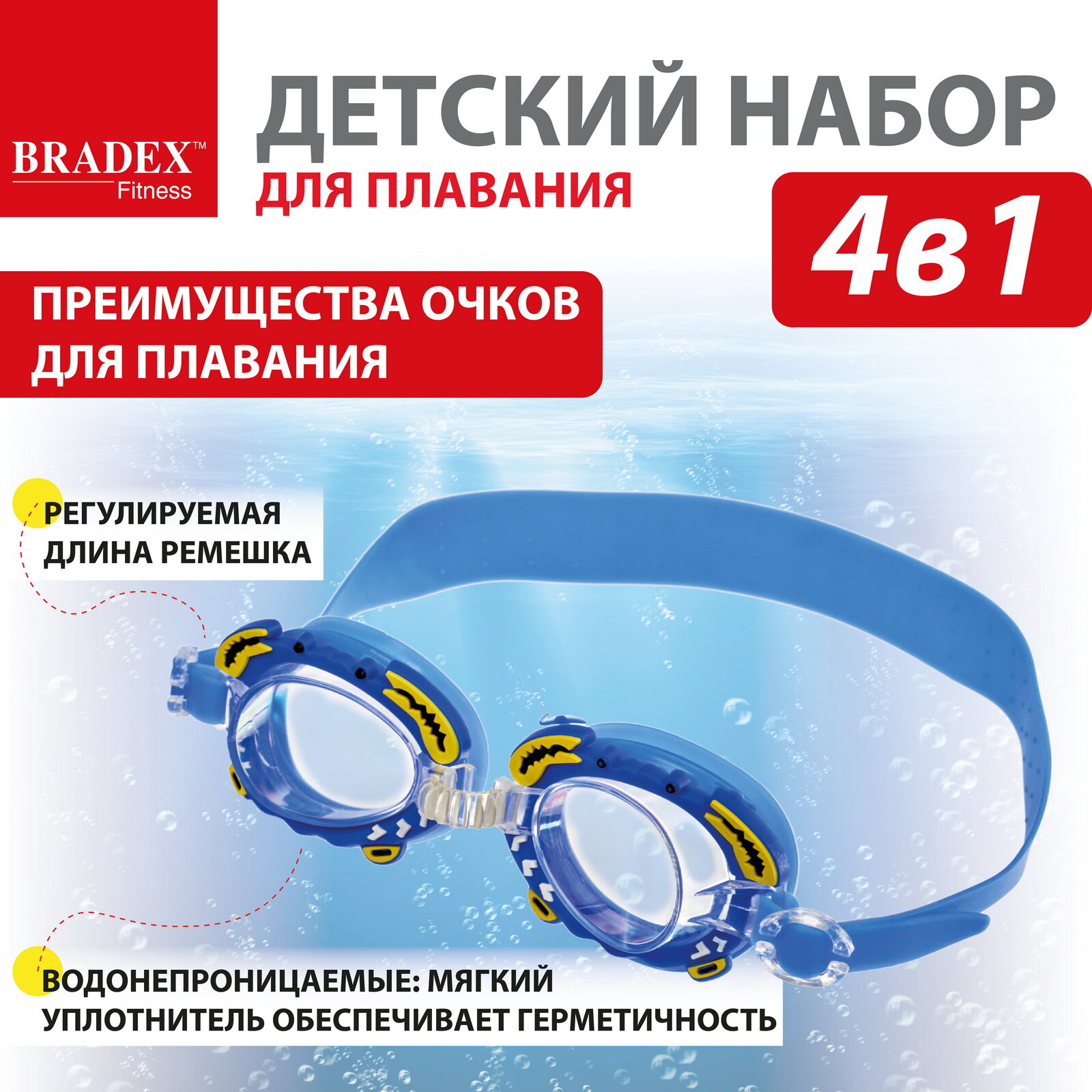10 цен на Набор для плавания Bradex «покоритель глубин» (шапочка, очки, беруши, зажим для носа)