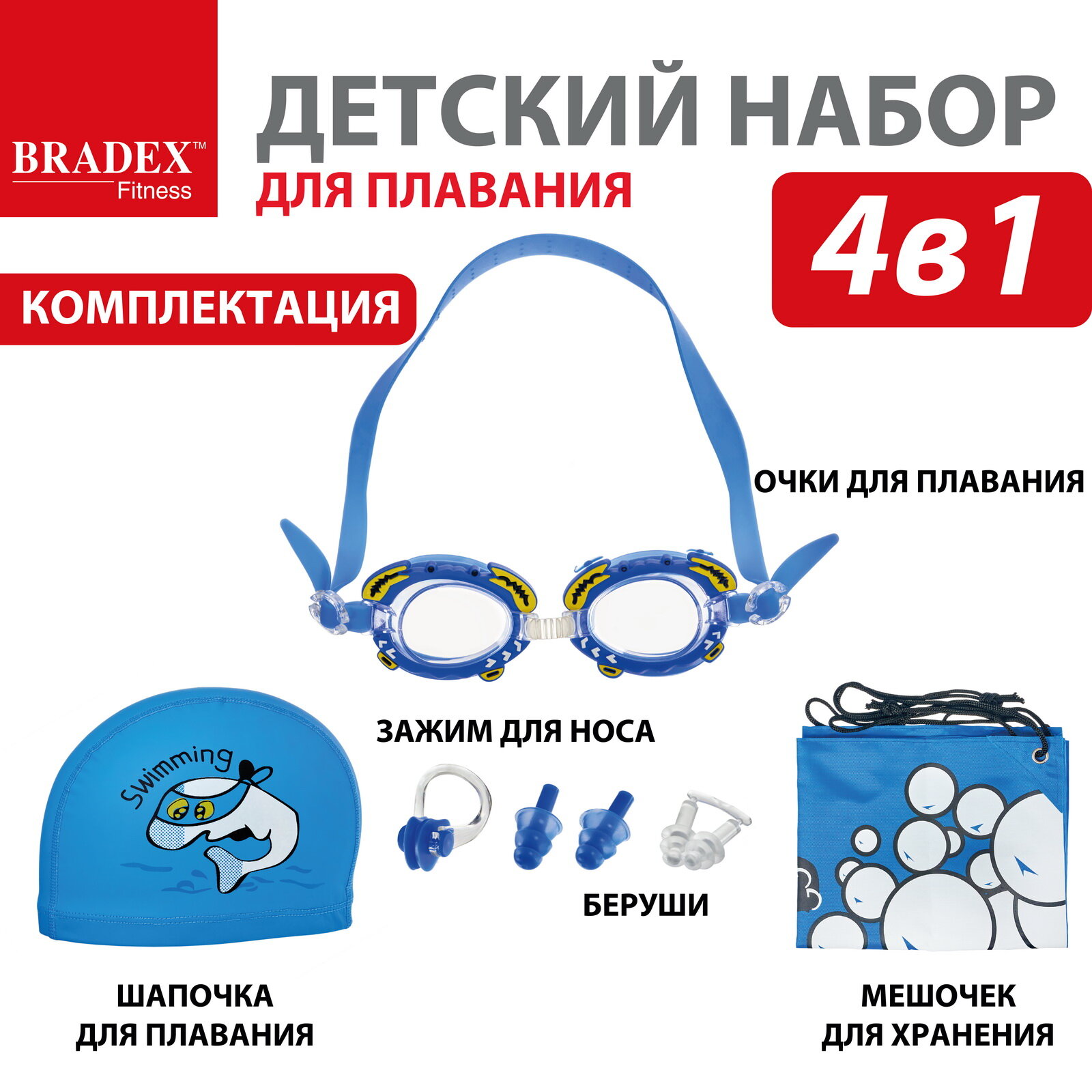 Набор для плавания Bradex «покоритель глубин» (шапочка, очки, беруши, зажим для носа) информация:
