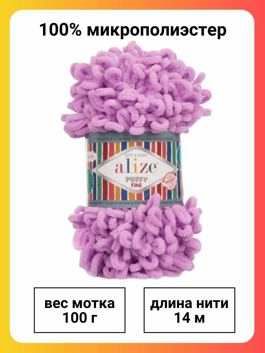 Пряжа для вязания Alize Puffy Fine 378 орхидея, 100 г, 14 м, 5 штук информация: