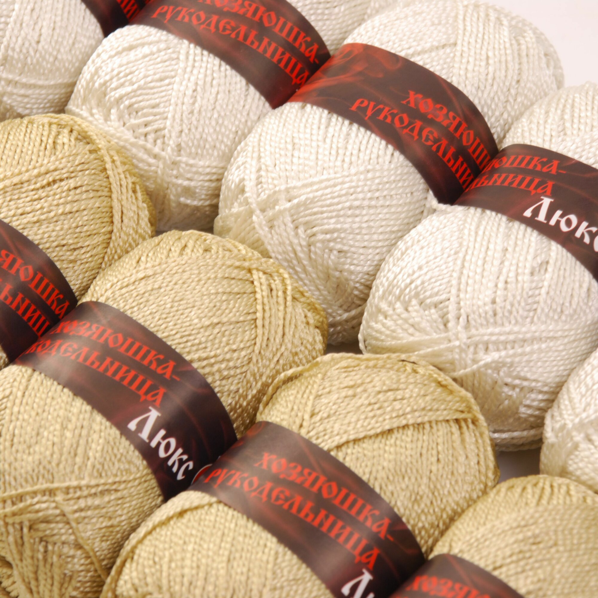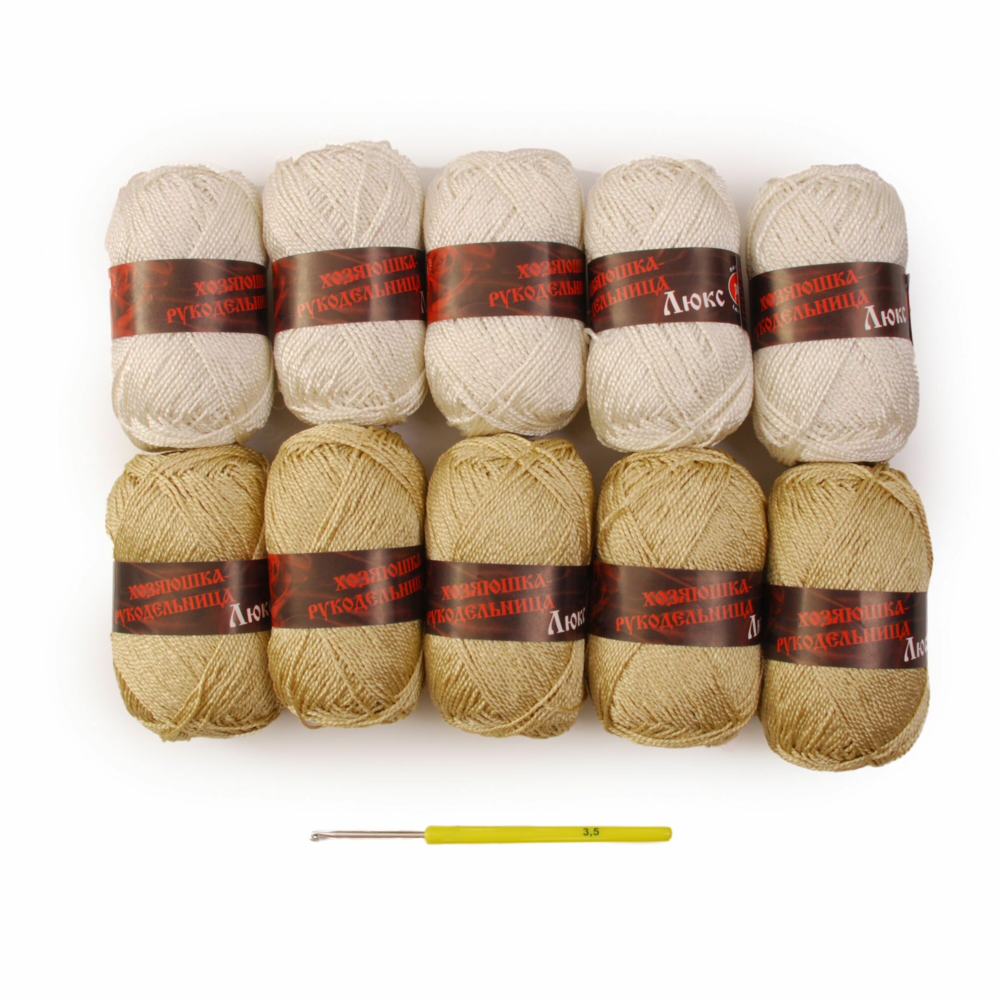 10 цен на Пряжа Хозяюшка-рукодельница Люкс, 50 г/140м, дуэт №7 5+5 шт белый/золото + крючок №3.5