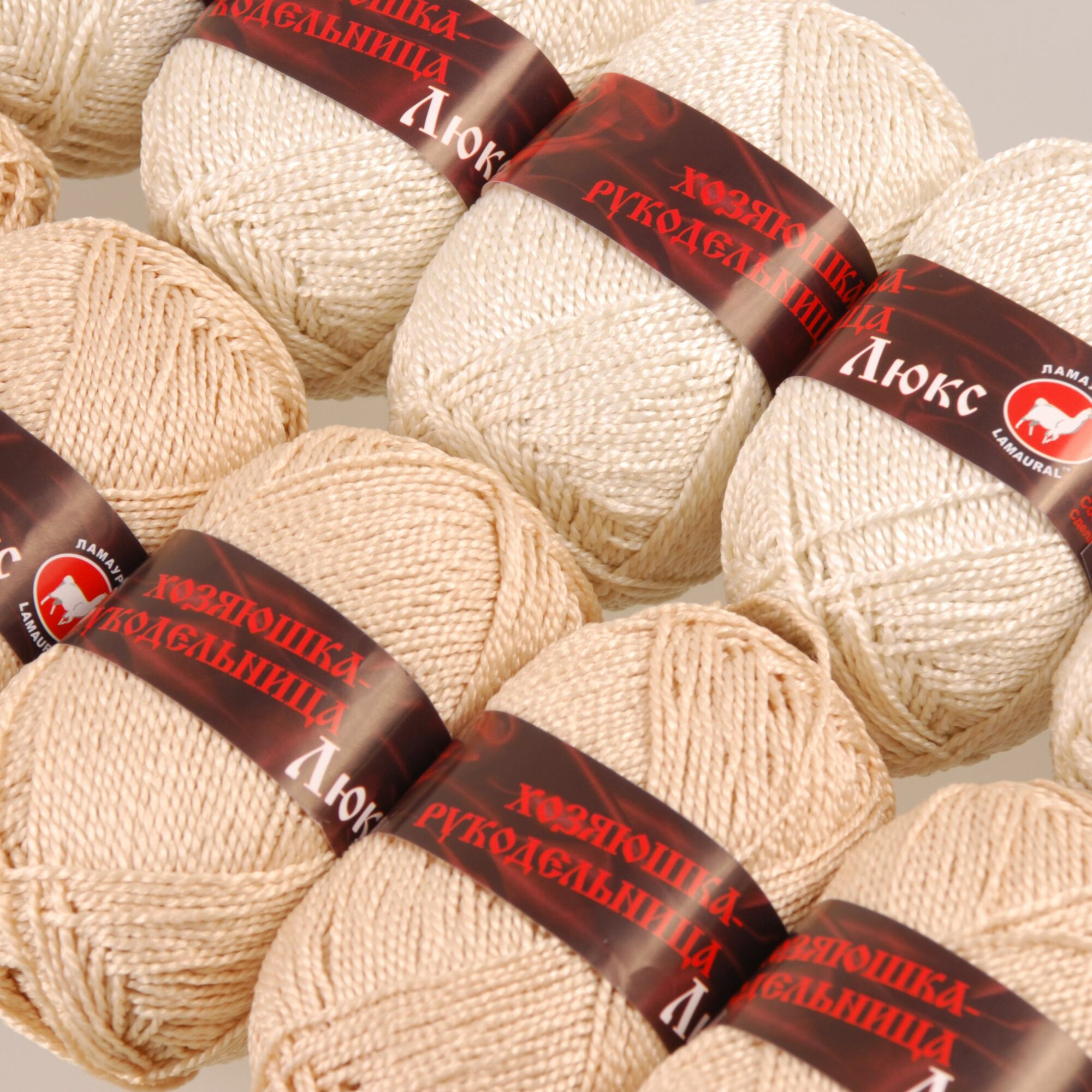 | Комплектация | 10 мотков пряжи Хозяюшка-рукодельница "Люкс", крючок для вязания №3 |