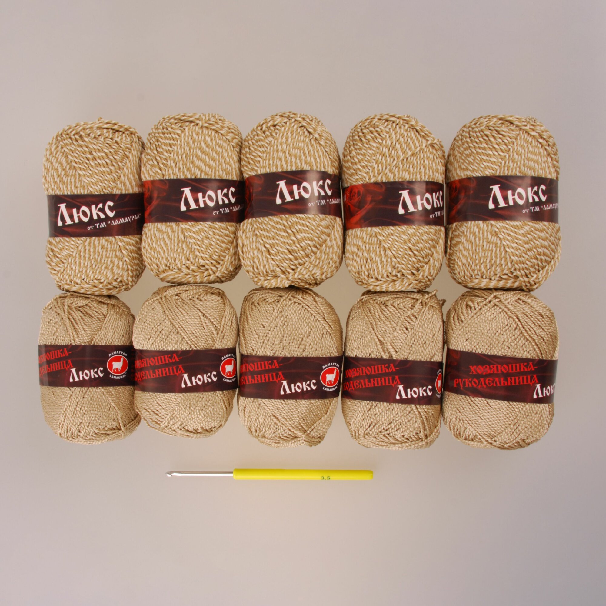 | Комплектация | 10 мотков пряжи Хозяюшка-рукодельница "Люкс", крючок для вязания №3 |