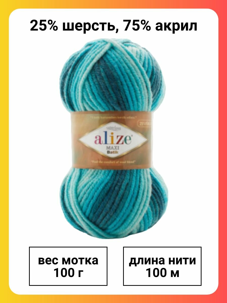Пряжа Alize Superlana Maxi batik бирюзово-петрольный (7801), 25%шерсть/75%акрил, 100м, 100г, 2шт