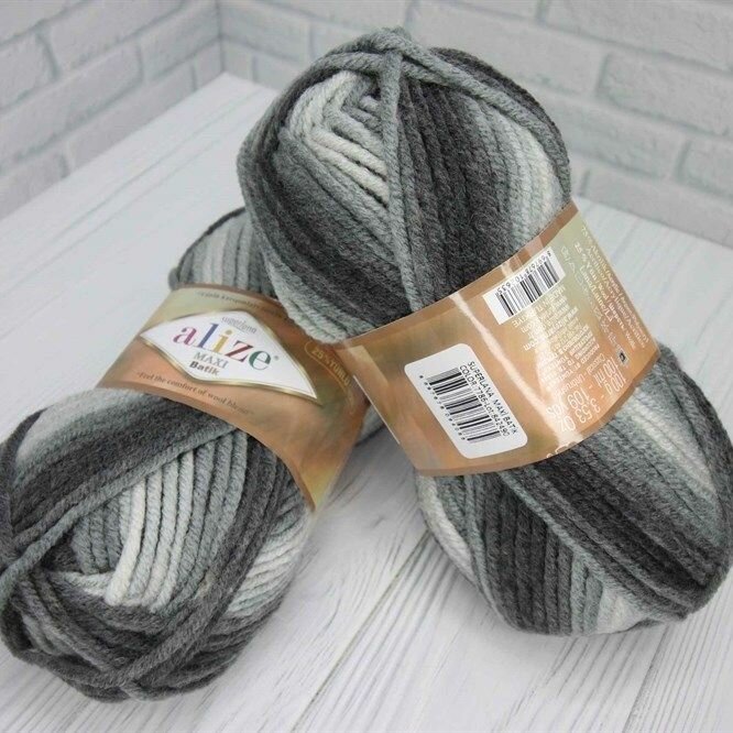 Пряжа Alize Superlana Maxi batik серо-черный (7786), 25%шерсть/75%акрил, 100м, 100г, 2шт