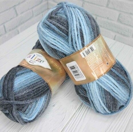 Пряжа Alize Superlana Maxi batik серый-голубой (7785), 25%шерсть/75%акрил, 100м, 100г, 2шт