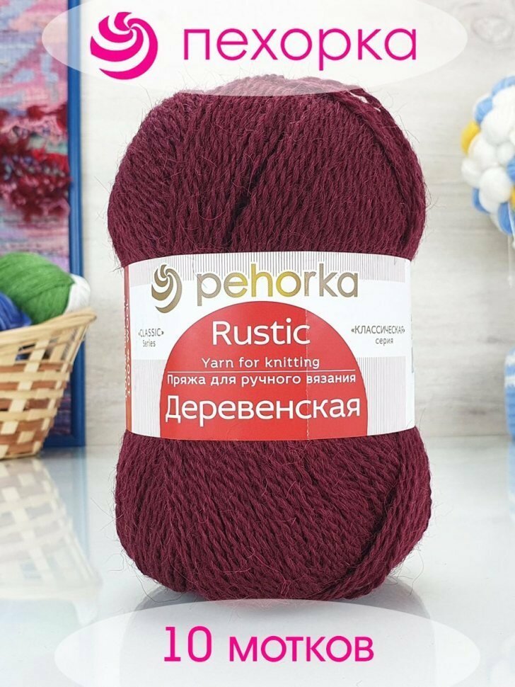 10 цен на Пряжа Пехорка деревенская 07 бордо (10 мотков)