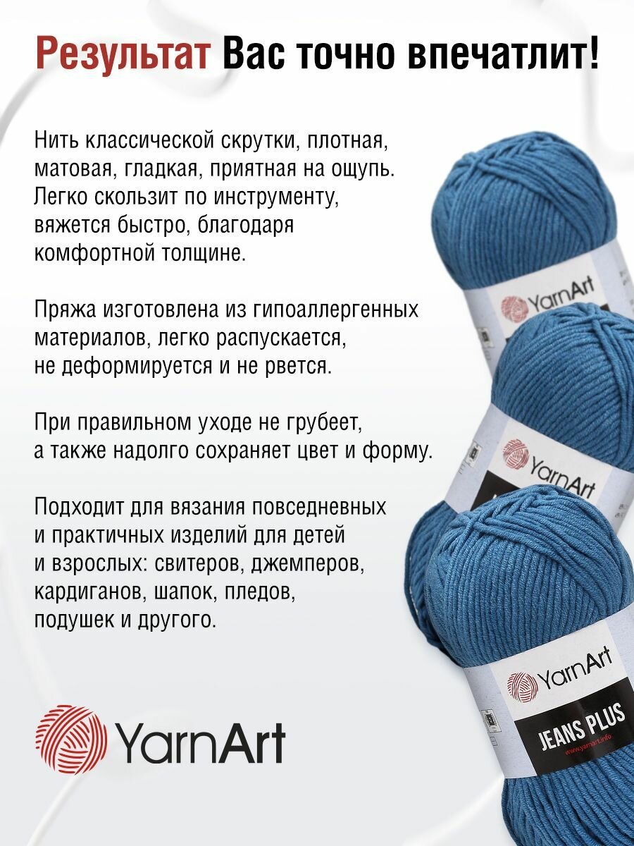 Пряжа для вязания YarnArt Jeans Plus, цвет 76 айсберг, моток 100г, 160м, 5 мотков 1 610 ₽