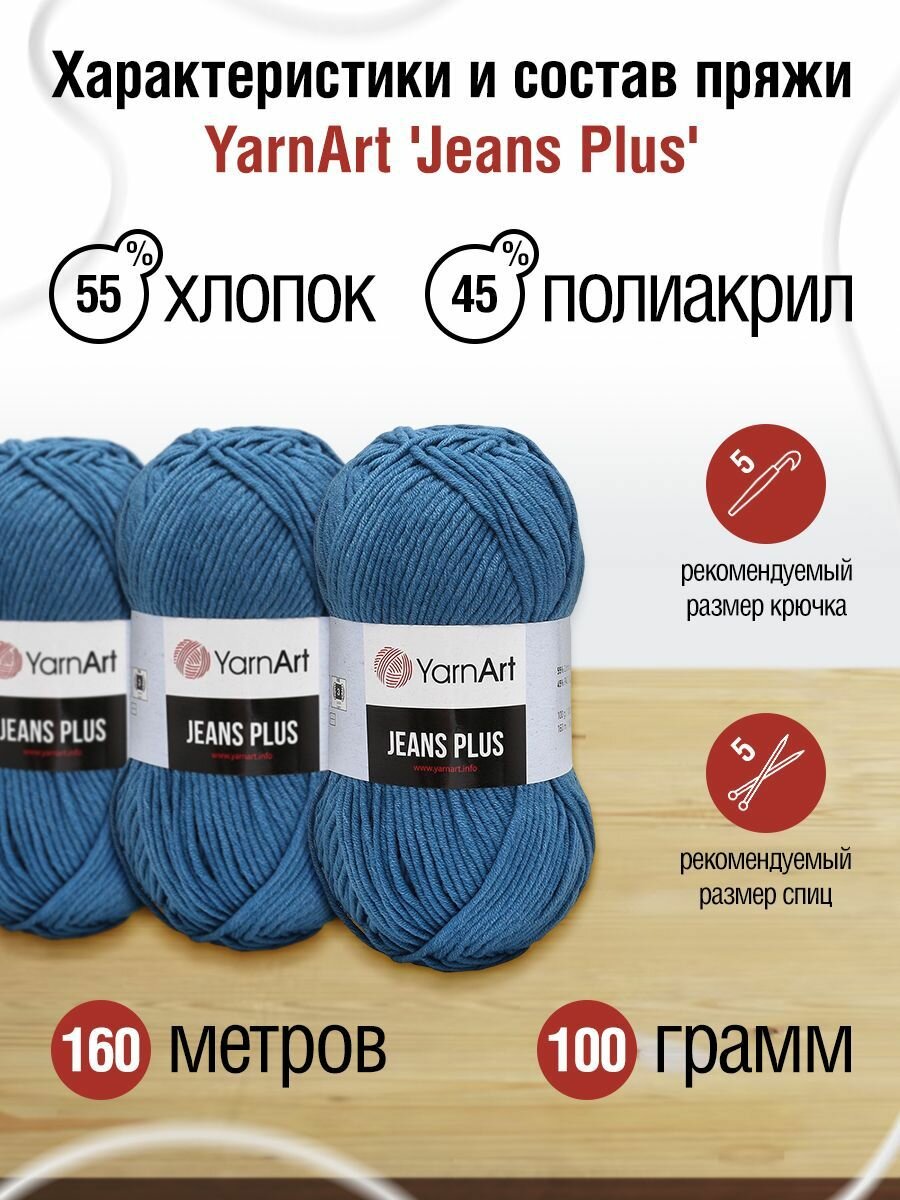 Пряжа для вязания YarnArt 'Jeans Plus' 100г, 160м (55% хлопок, 45% полиакрил) (75 голубой), 5 мотков 1 270 ₽