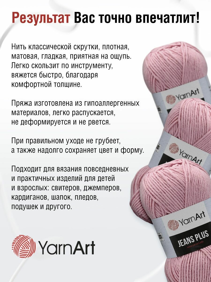 Пряжа для вязания YarnArt 'Jeans Plus' 100г, 160м (55% хлопок, 45% полиакрил) (36 розовый), 5 мотков информация:
