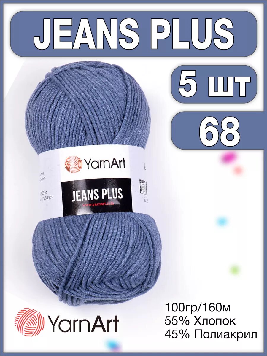Пряжа Jeans Plus 68 для вязания, 100г/160м - 5 шт информация: