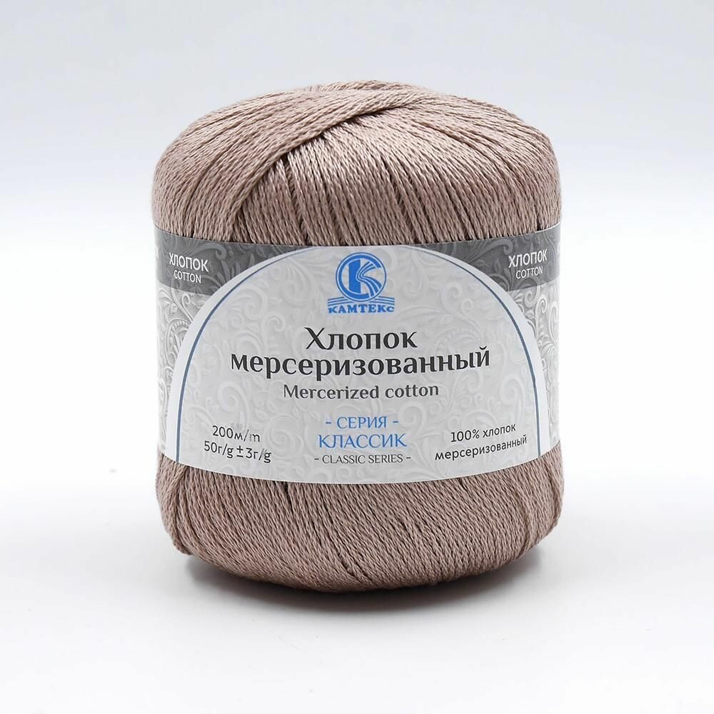Пряжа Камтекс Хлопок мерсеризованный бежевый (005), 100%мерсеризованный хлопок, 200м, 50г, 1шт