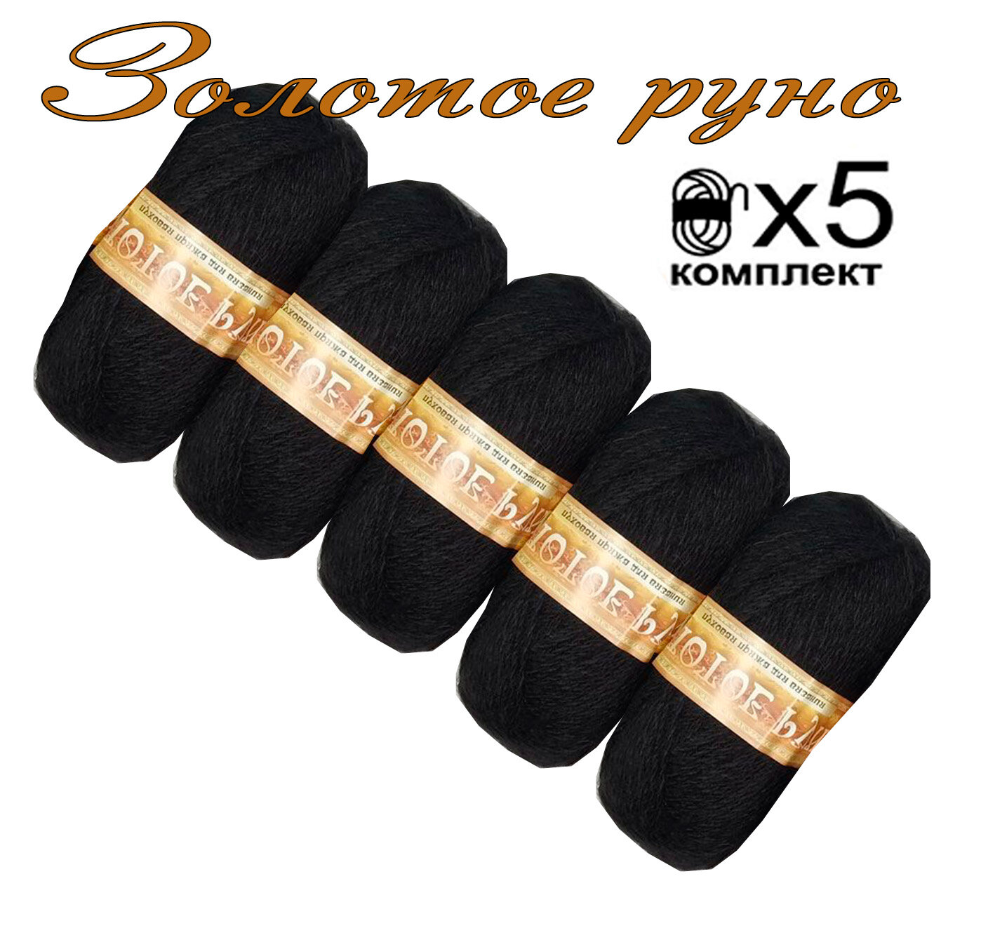 Пряжа с козьим пухом и овечьей шерстью (500 грамм/1250 метров) для вязания, состав: козий пух 40%, овечья шерсть 50%, акрил 10%. Набор 5шт.Черный 951 ₽