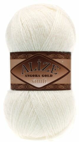 Пряжа ALIZE ANGORA GOLD SIMLI, молочный - 62, 5% металлик, 20% шерсть, 75% акрил, 5 мотков, 100 г, 500 м. 1 514 ₽