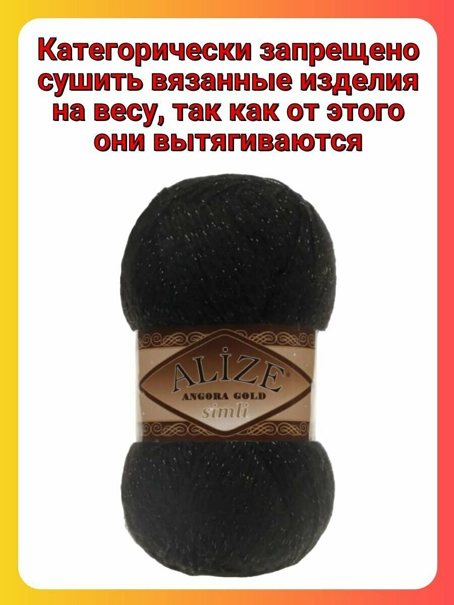 Пряжа ALIZE ANGORA GOLD SIMLI, черный - 60, 5% металлик, 20% шерсть, 75% акрил, 5 мотков, 100 г, 500 м. информация: