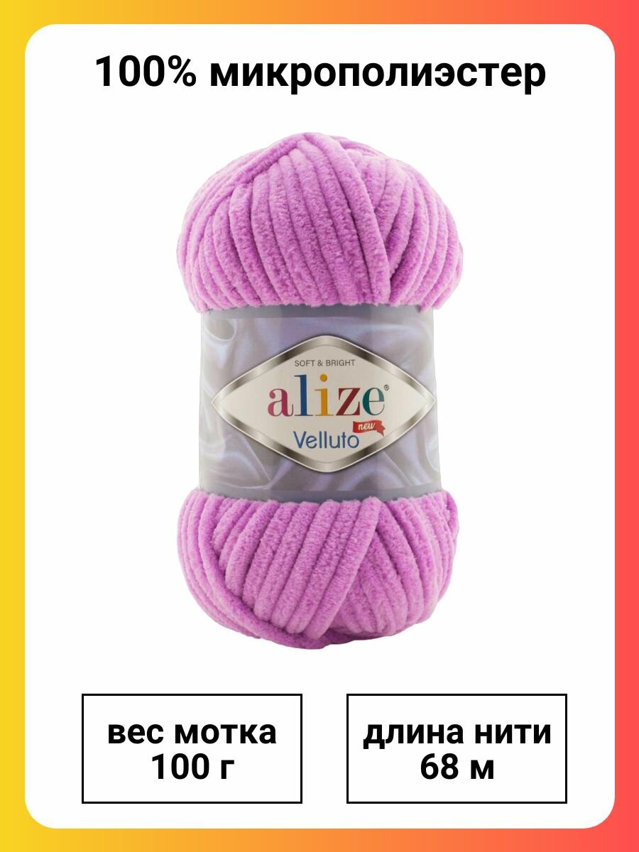 10 цен на Пряжа Alize Velluto 378 орхидея, 100 г, 68 м, 5 штук