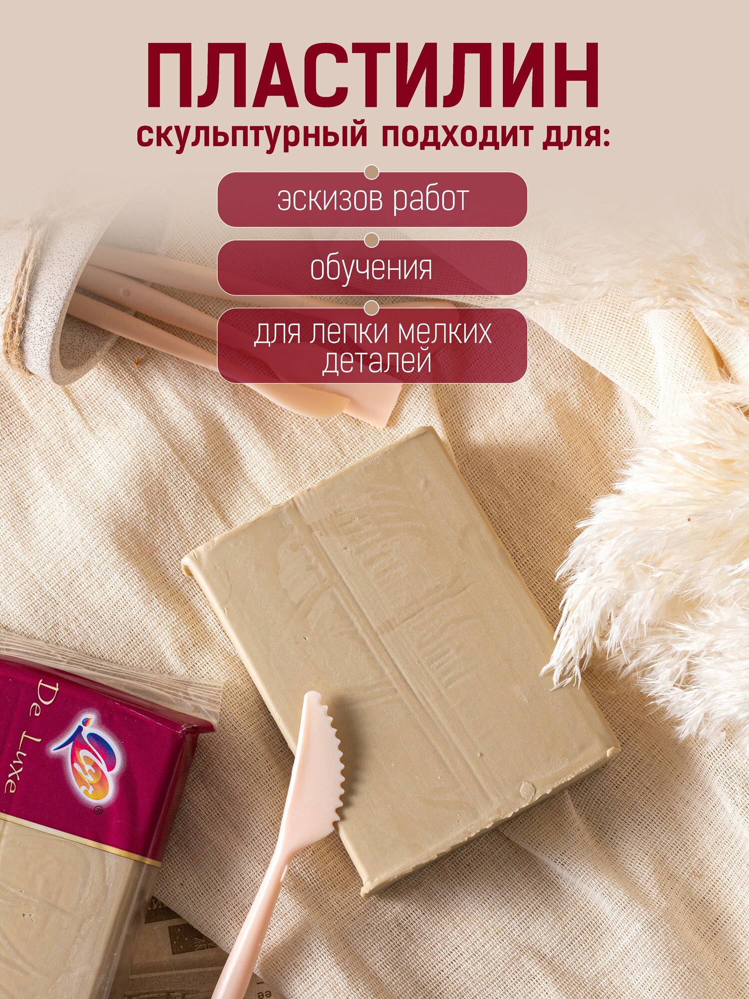 Пластилин скульптурный Люкс, 300 гр, телесный информация: