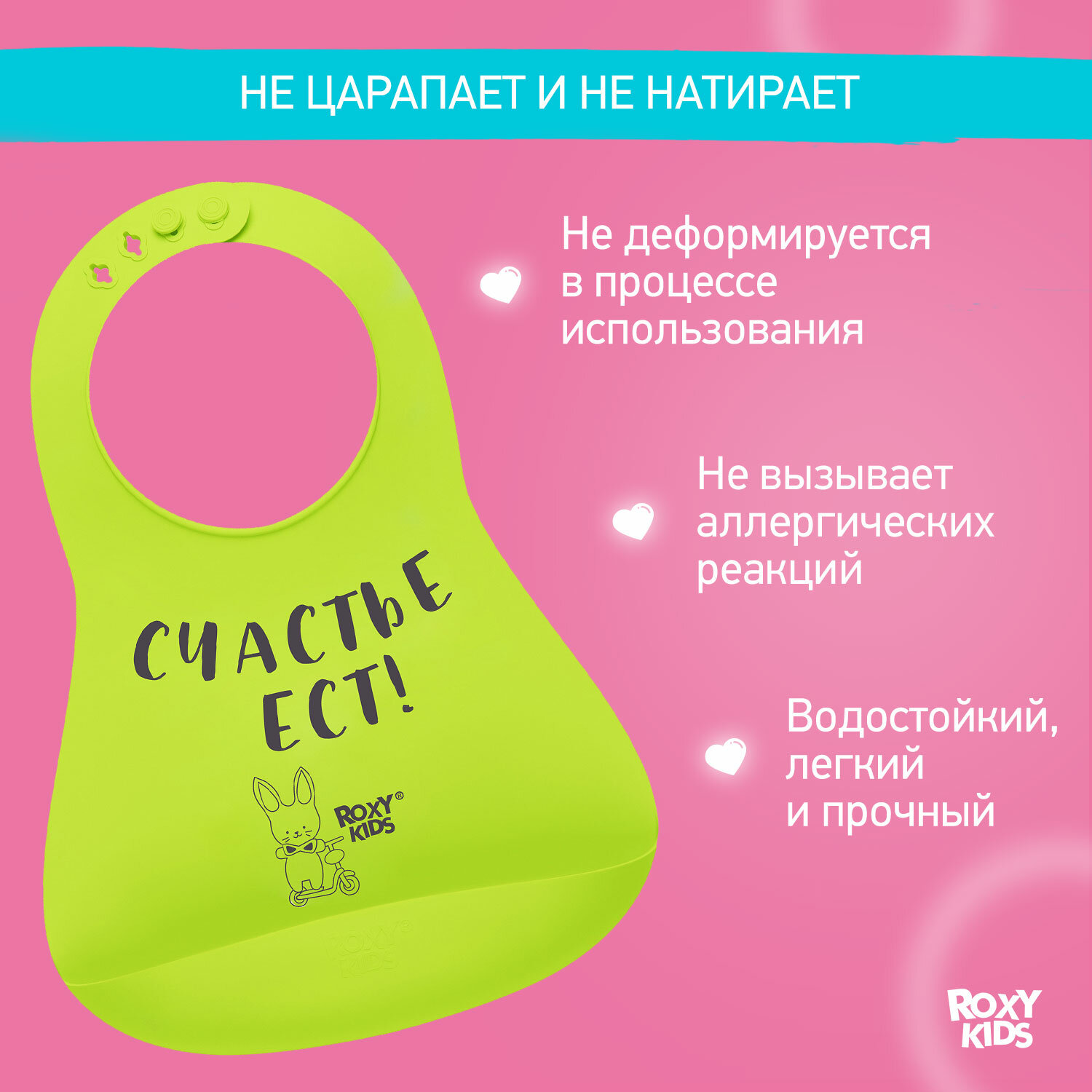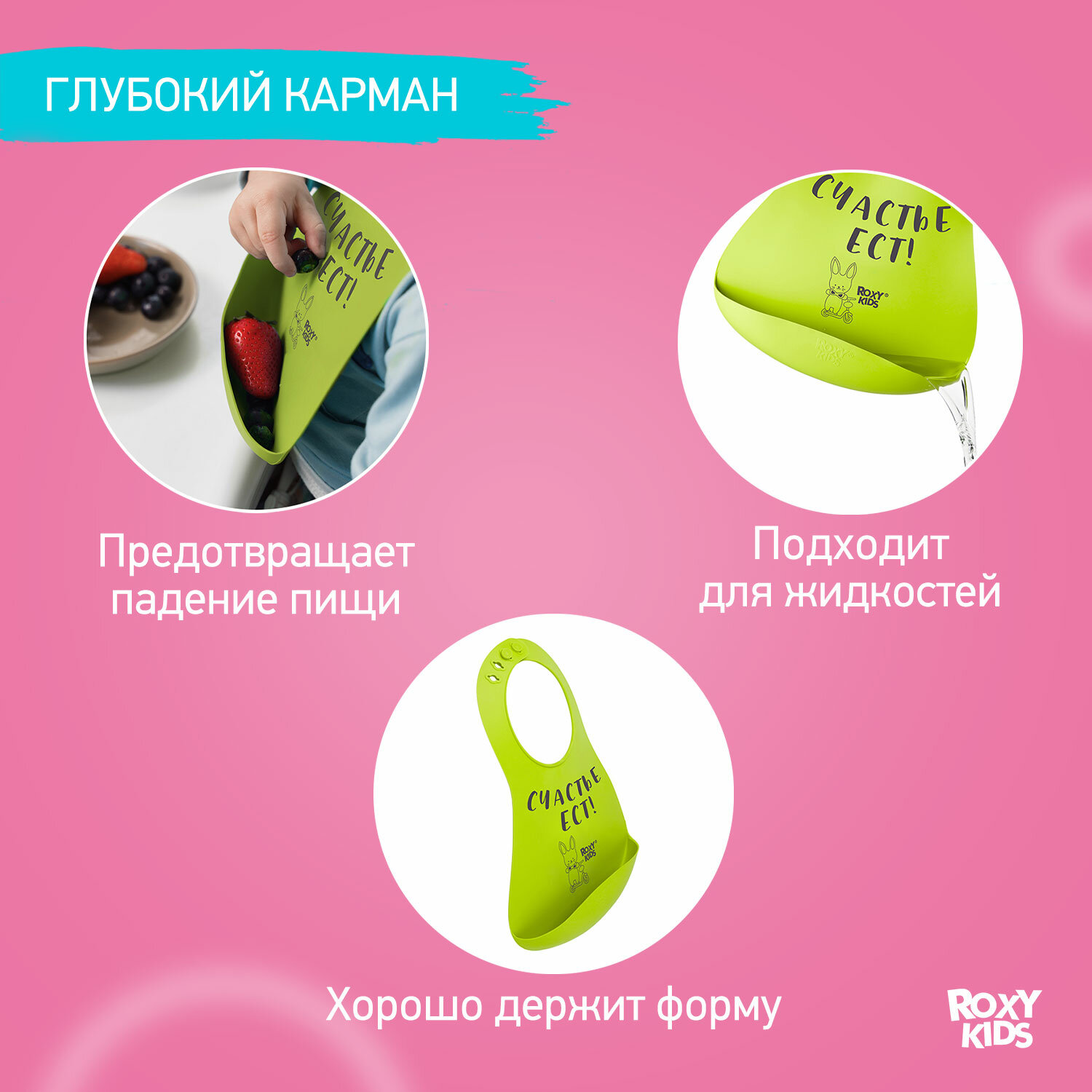 10 цен на Нагрудник для кормления ROXY-KIDS, слюнявчик пластиковый с кармашком, зеленый