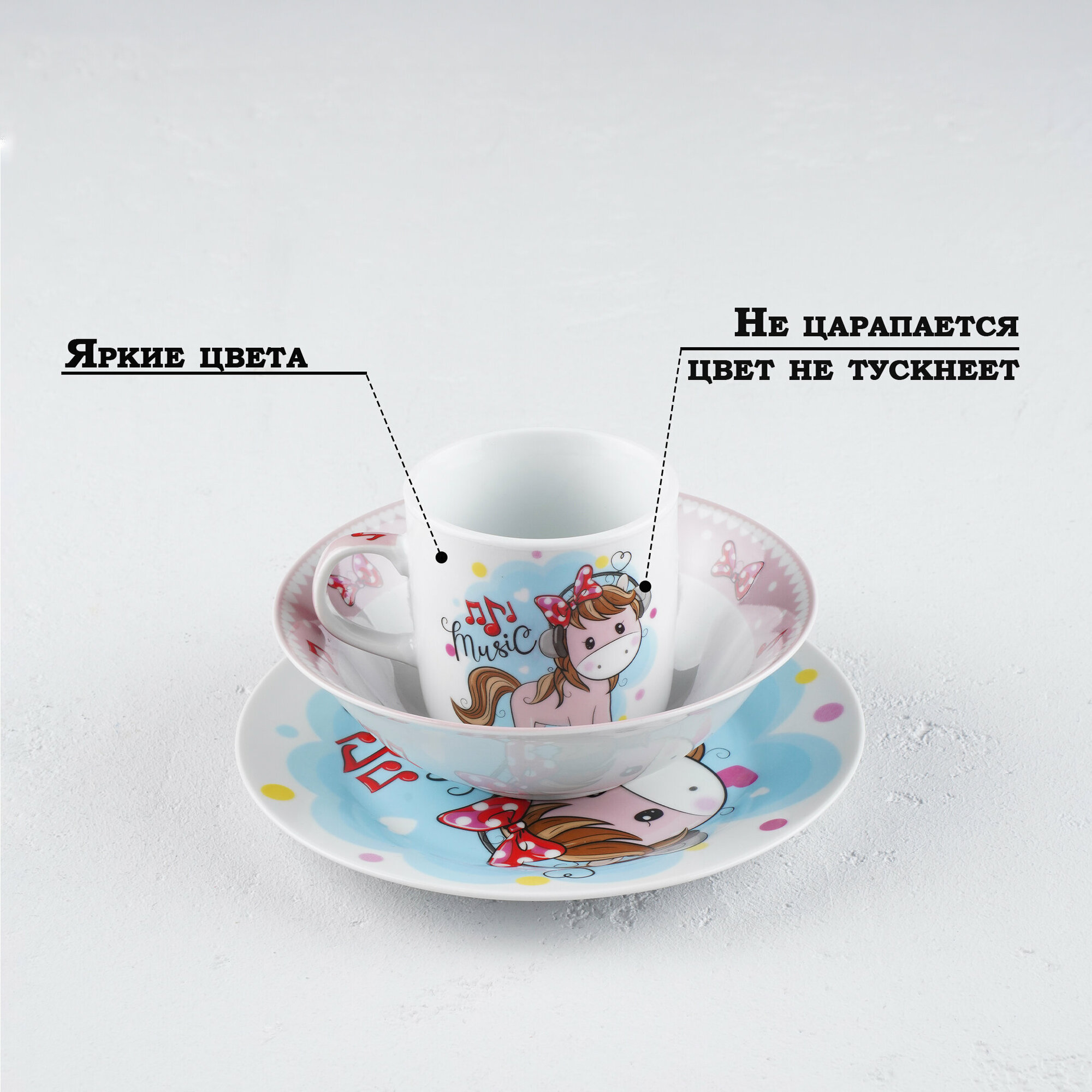 Набор детской посуды Доляна «Маленькая лошадка», 3 предмета: кружка 230 мл, миска 400 мл, тарелка d=18 см