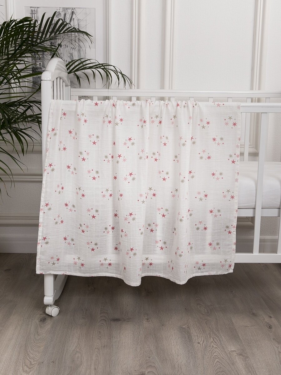 10 цен на Муслиновая пелёнка Tessolo Home "Звезды", розовая, впитывающая, многоразовая, 120x120 см