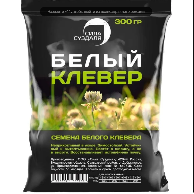 Клевер белый многолетний Сила Суздаля/ семена газонной травы, 300 гр информация: