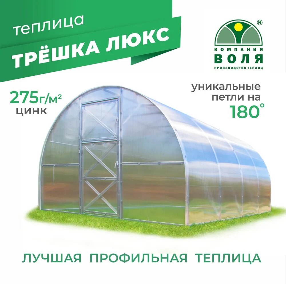 Теплица "Дачная Трешка Люкс" 4м с декоративной окантовкой и поликарбонатом "Воля Стандарт" 4мм