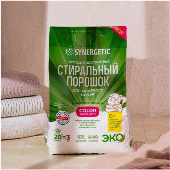 Отзывы на Стиральный порошок Synergetic COLOR для цветного белья, гипоаллергенный, 3 кг
