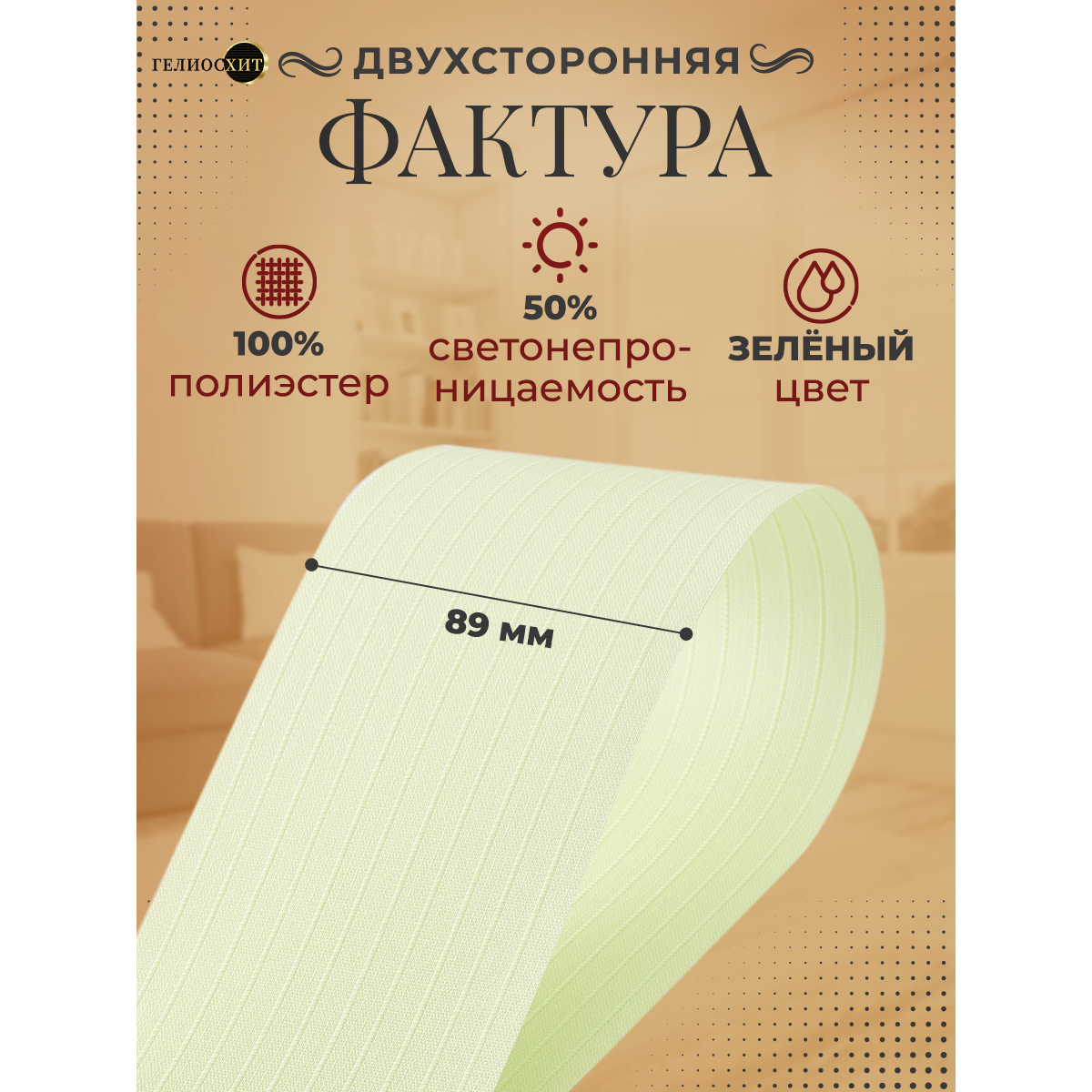 Ламели для вертикальных жалюзи 15 шт высотой 255 см зеленого цвета, карниз приобретается отдельно, гелиосхит. информация: