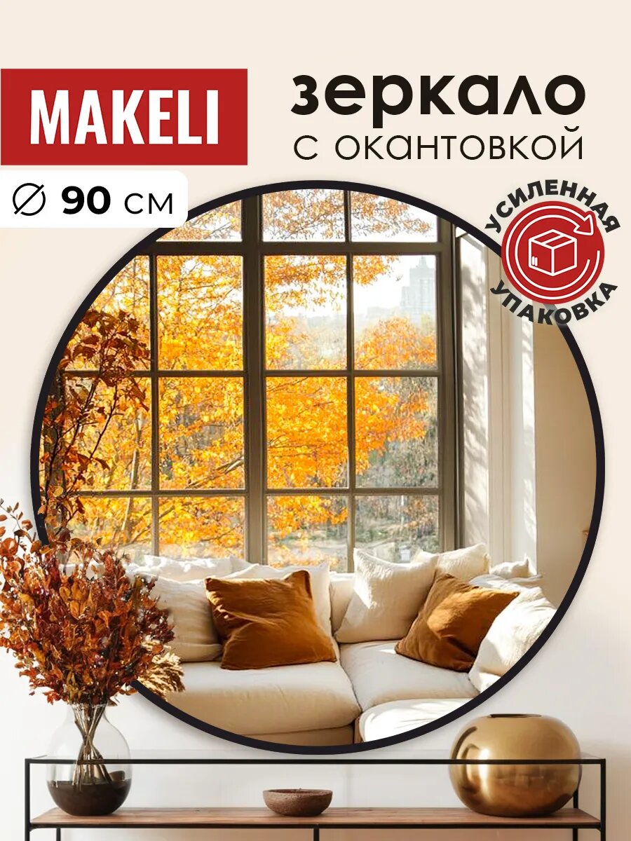 Круглое зеркало Makeli 50 см, с черной окантовкой, для ванной и интерьера 2 455 ₽