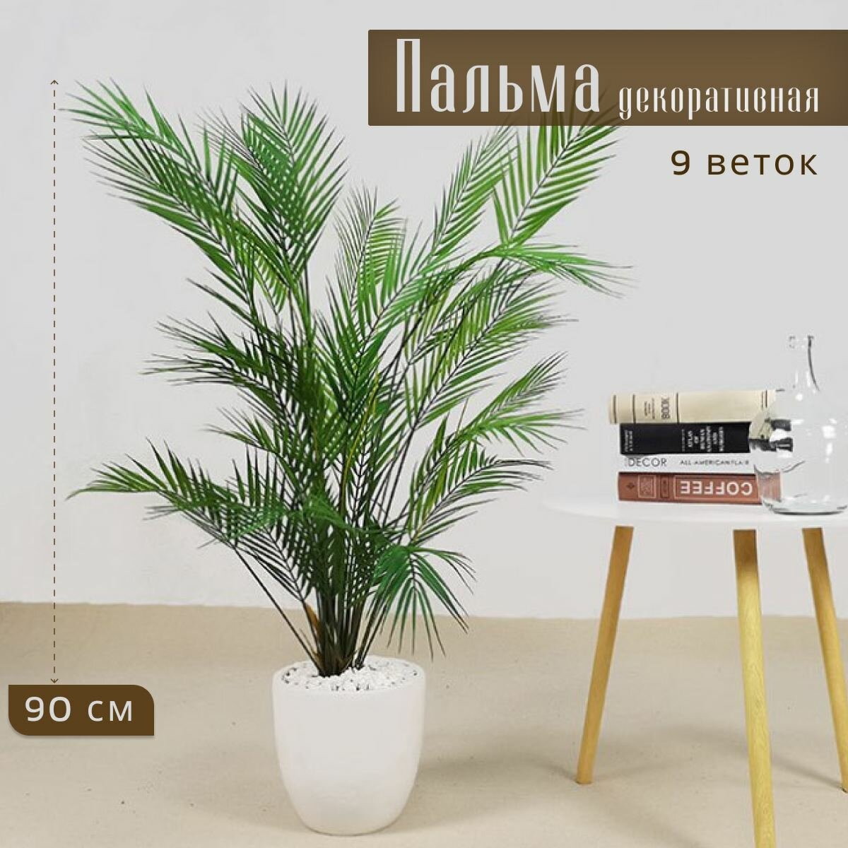 Пальма искусственная Grönheem 90 см, 9 ветвей, зеленая, 1 шт, ПВХ информация: