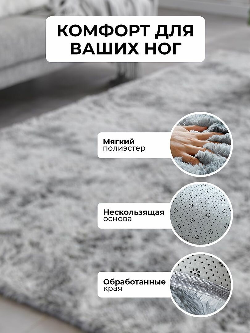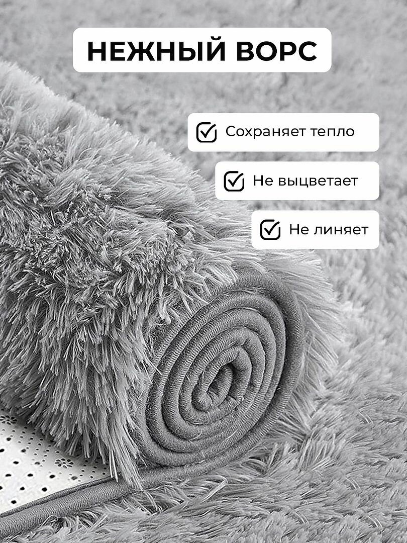 Ковер на пол для комнаты с ворсом 150х200 см, мягкий пушистый меховой в гостиную, спальню, зал и детскую антискользящий, серый информация: