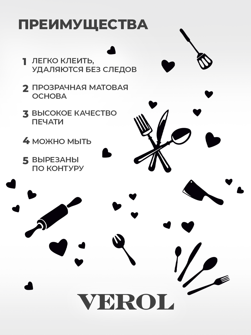 Комплект наклеек VEROL Правила кухни, матовый, многоразовый