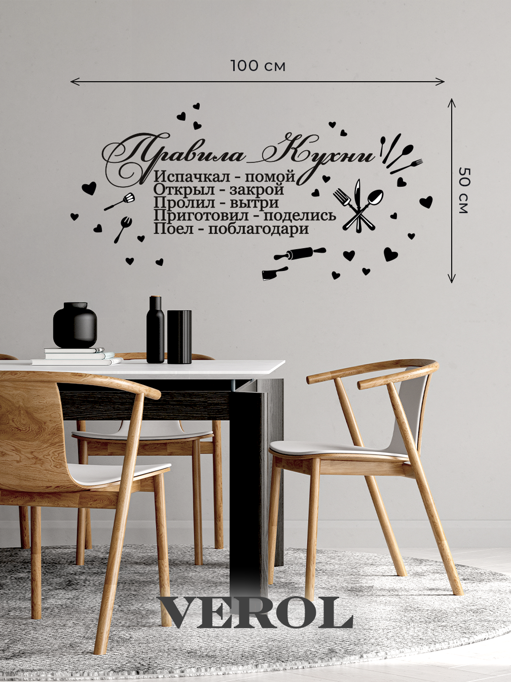 Наклейки интерьерные на стену VEROL "Правила кухни " виниловые, для декора информация: