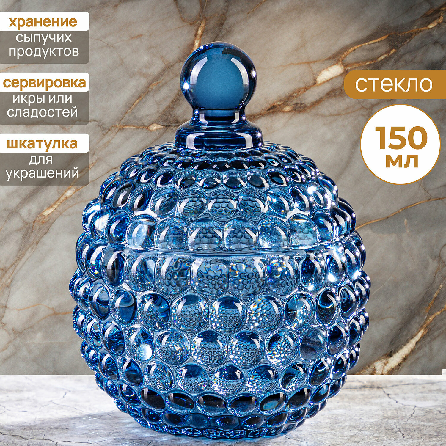 Горшочек для меда, для варенья 150 мл Elan Gallery Пузырьки синий 8,5х8,5х11 см информация: