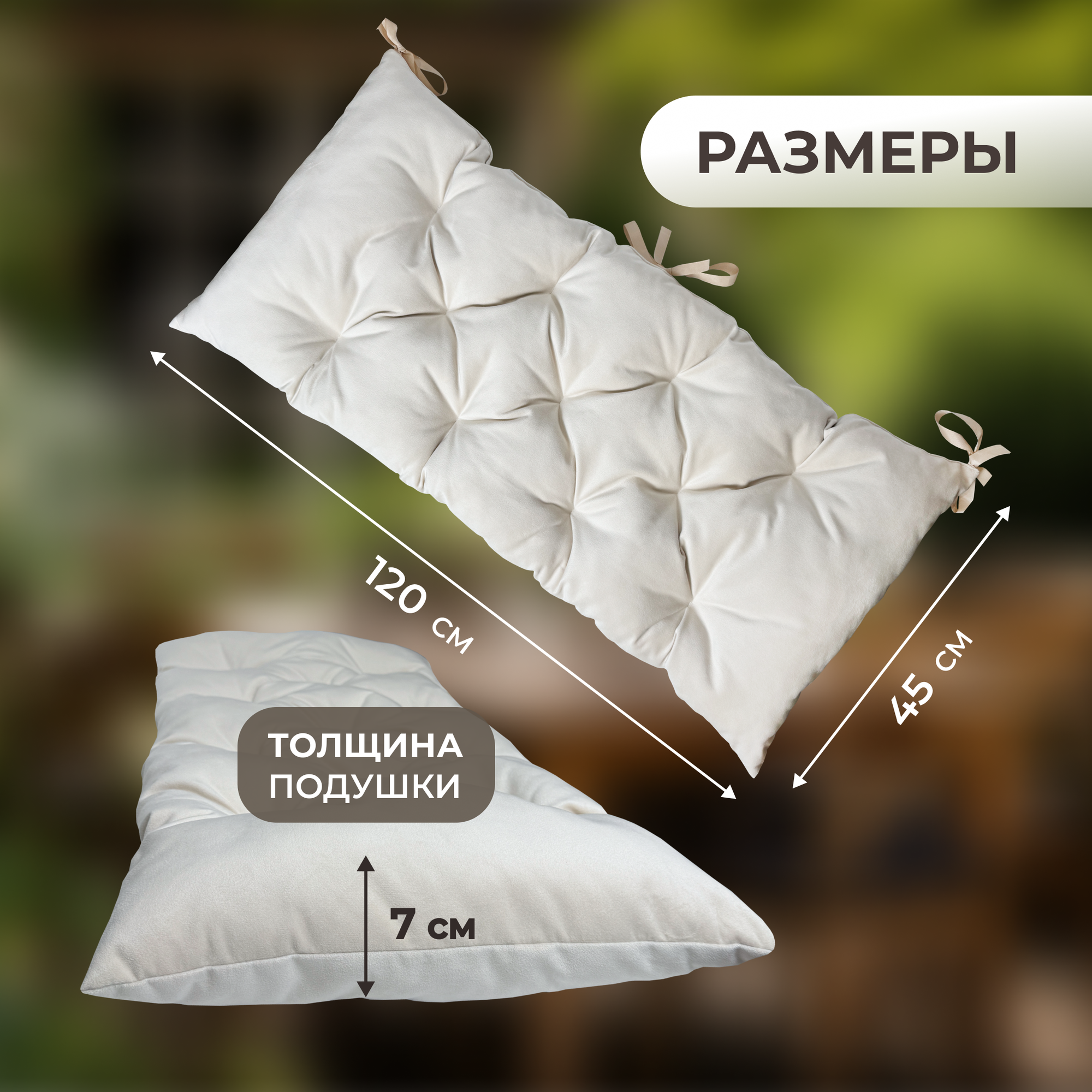 Отзывы на Подушки для дачи и дома 120х45см, велюр, подушка на скамью, подушка на подоконник, цвет бежевый