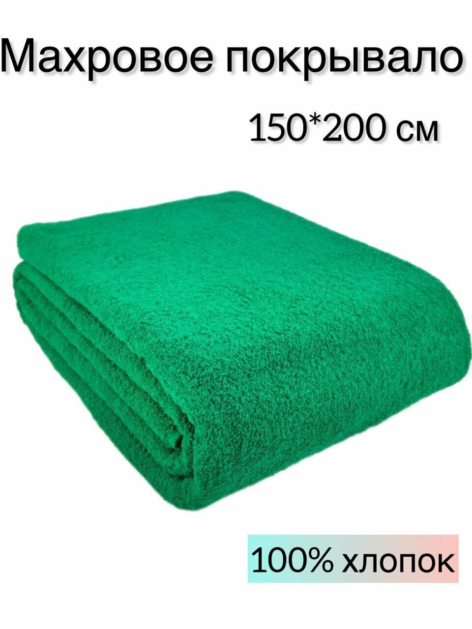 Махровая простынь для укрывания, 150x200 см, летнее одеяло, большое полотенце, цвет: изумрудный 1 820 ₽